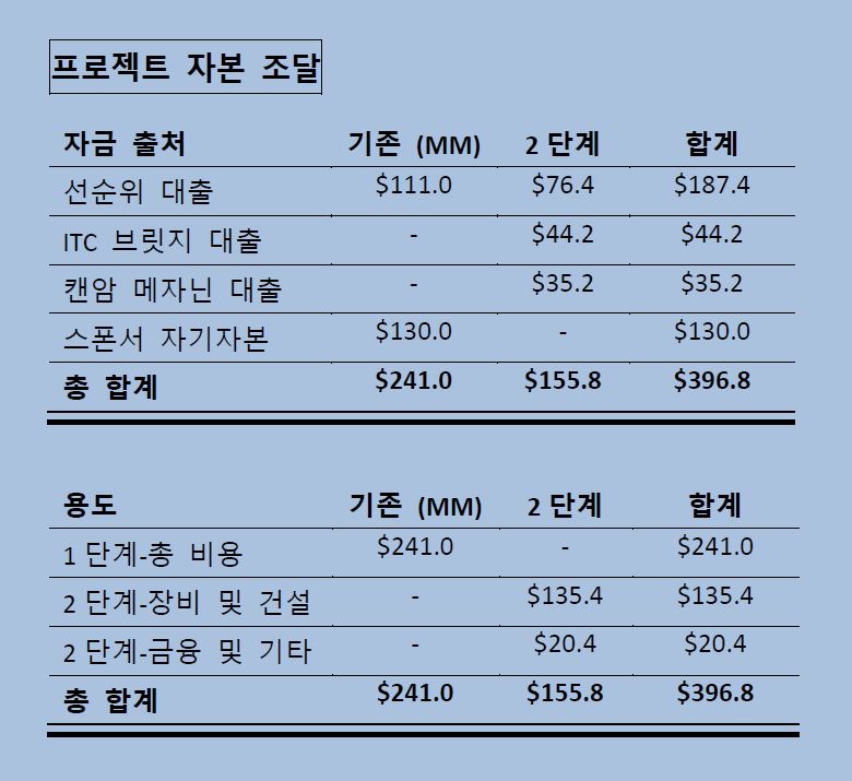 - 건설 위험 최소화: 4시간 저장 기본 시설은 이미 운영 중에 있어 건설에 따른 위험이 감소됩니다. 1단계와 동일한 배터리 공급업체 및 EPC 시공사가 참여하고, 2단계에 필요한 모든 허가를 취득했습니다.